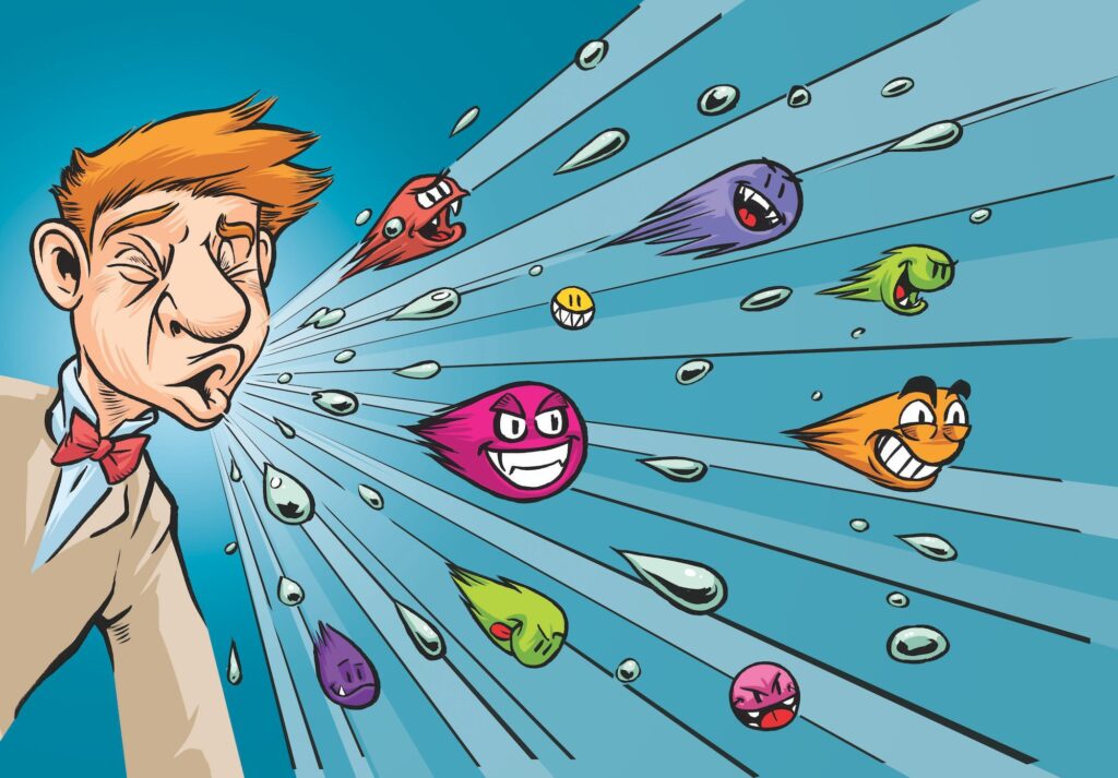 Frequentemente olhando para o relógio, começa a se servir quando, por instante, percebe por cima dos óculos um gesto estranho do cunhado. Capitão estava com as duas mãos sobre a mesa, a boca semiaberta repleta de cuscuz, olhos semifechados, elevando vagarosamente a cabeça, propiciando o aumento da caixa torácica, quando, de súbito e sem controle, espirra ou tosse, melhor dizendo, espirra e tosse ao mesmo tempo, numa pressão jamais vista, deixando o coitado do Adolfo literalmente pigmentado de cuscuz.